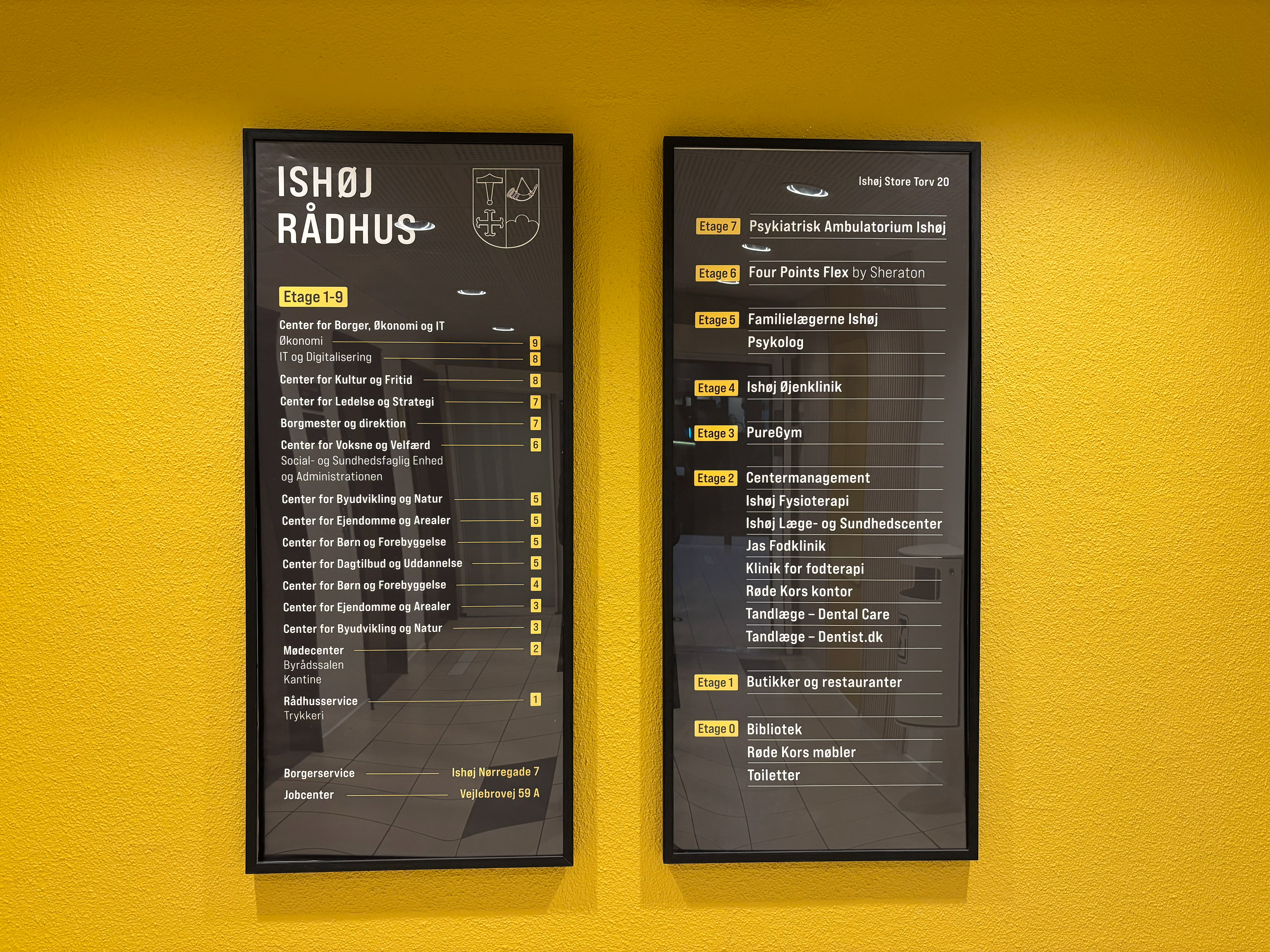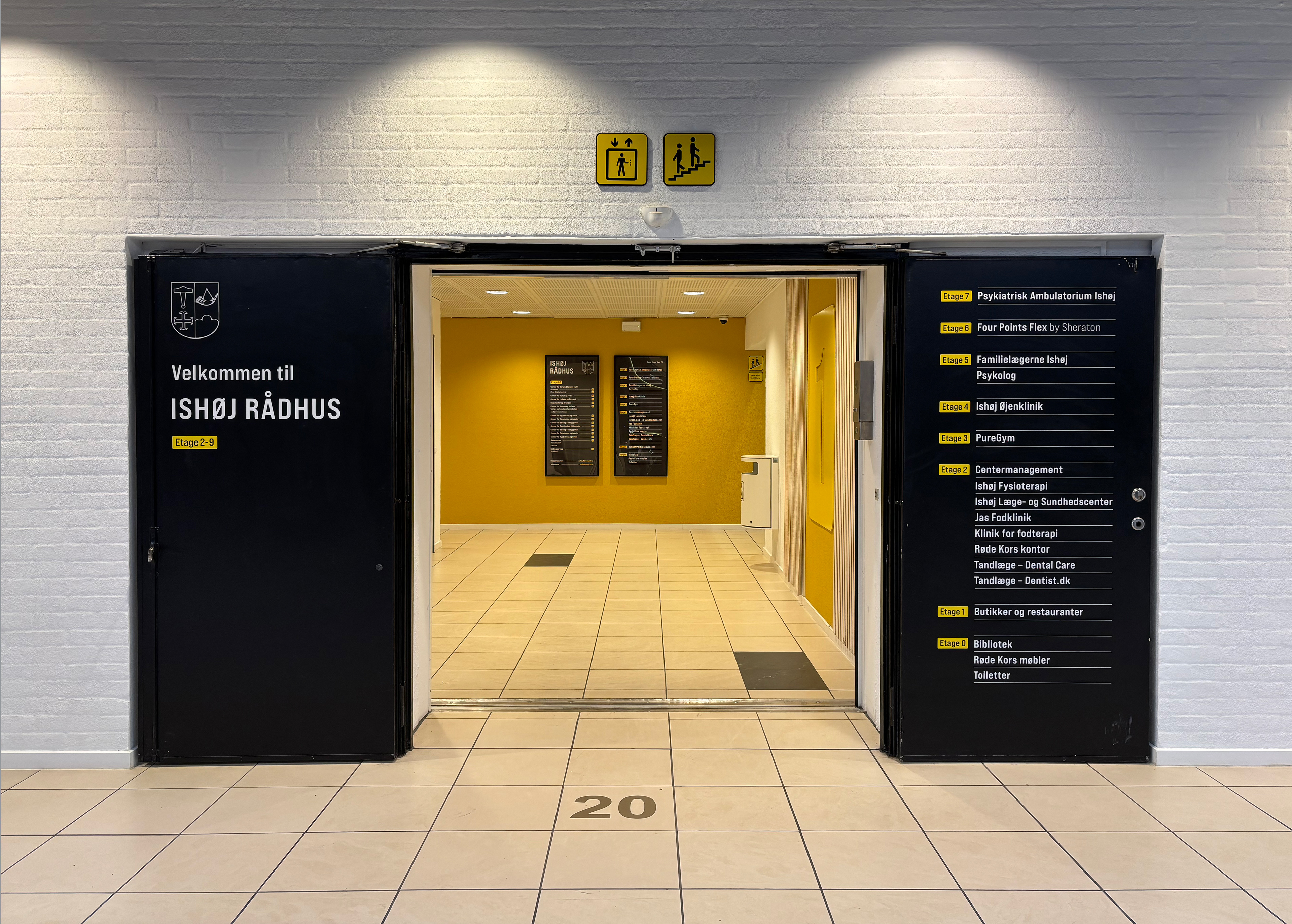 Projektet omfattede renovering og skiltning omkring og i trappeopgangen til Ishøj Rådhus. Formålet var at sikre rådhusets gæster en god ankomstoplevelse og overskuelig vejvisning. Rådhuset er lokaliseret i Ishøj Bymidte, og opgaven blev løst som en del af et større renoverings- og forskønnelsesprojekt i Ishøj Bymidte.